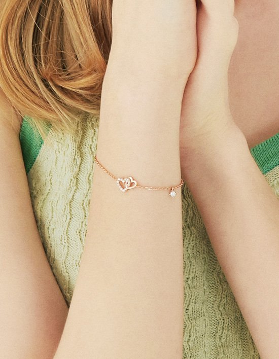 [품질보증서+쇼핑백+케이스 동봉] 서로 겹쳐있는 하트 쉐입이 로맨틱하고 러블리한 스타일의 팔찌 디자인