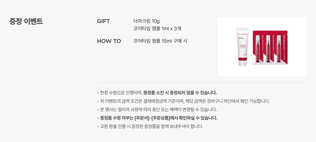 · 구매 후, 주문내역 화면 내에 증정상품이 표시되면 증정상품이 제공되며, 재고 소진 등으로 증정상품이 제공되지 않을 경우 해당 영역에서 증정상품이 표시되지 않습니다.