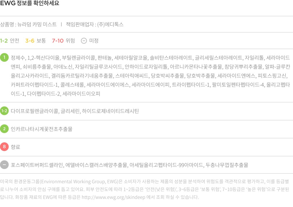 사용법 ・ 제품을 가볍게 흔들어준 뒤, 15cm 간격을 두고 얼굴에 2~3회 정도 분사하세요.