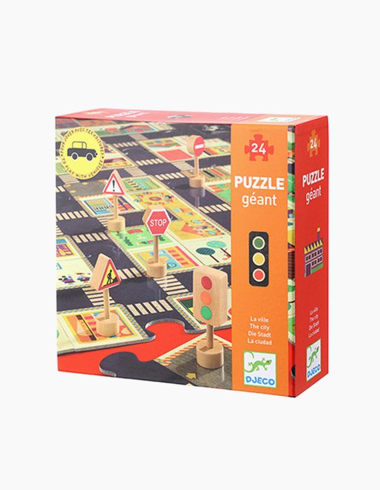 도로 모양이 그려진 빅 사이즈퍼즐과 교툥표지판으로 구성