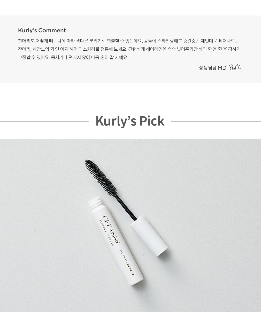 ・ 특징 : 별도의 헤어 기기를 사용하지 않고도 헤어라인과 잔머리를 빗어주면 잔머리 정돈부터 포인트 가닥 연출까지 스타일링이 가능한 헤어 마스카라예요.