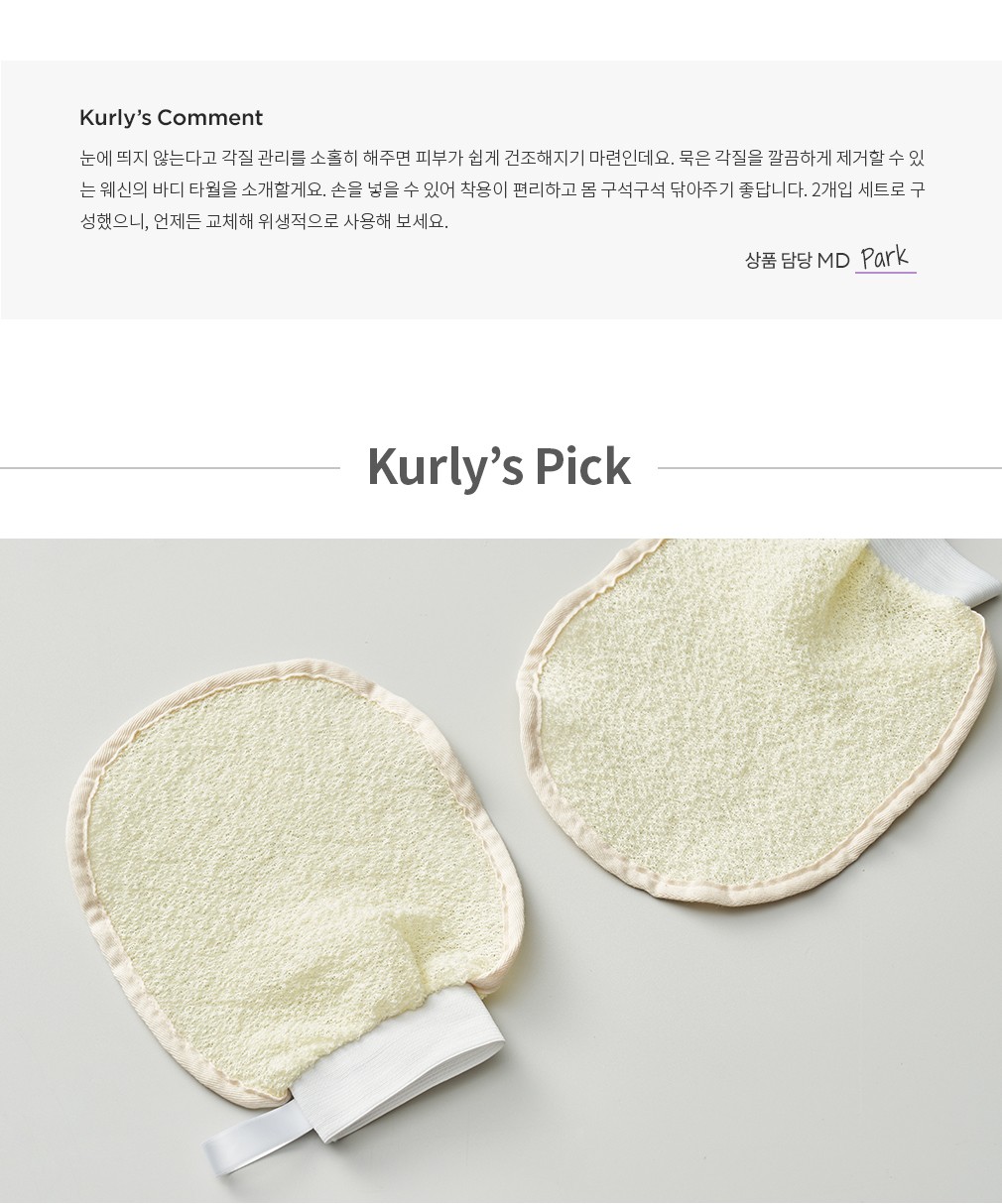 ・ 특징 : 각질 제거에 탁월한 하드 타입의 글로브 타월입니다. 꾸준히 사용하면 한결 보드랍고 깨끗한 피부를 가꿀 수 있어요.