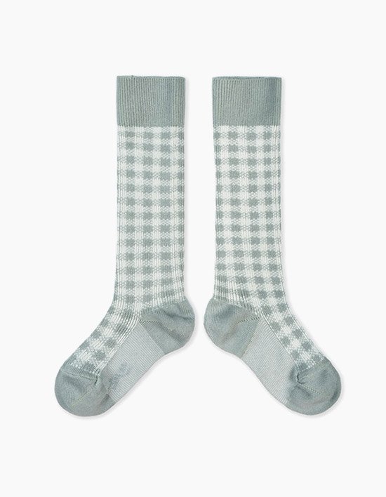 [꼴레지앙] 클로디 체크 반스타킹 무릎 양말 - 그린마린