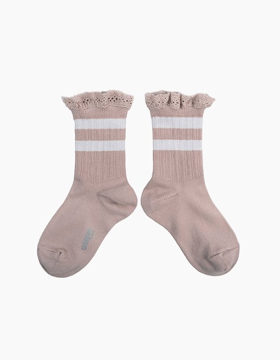 [꼴레지앙] 니콜 스트라이프 레이스 유아동 양말 - 로즈