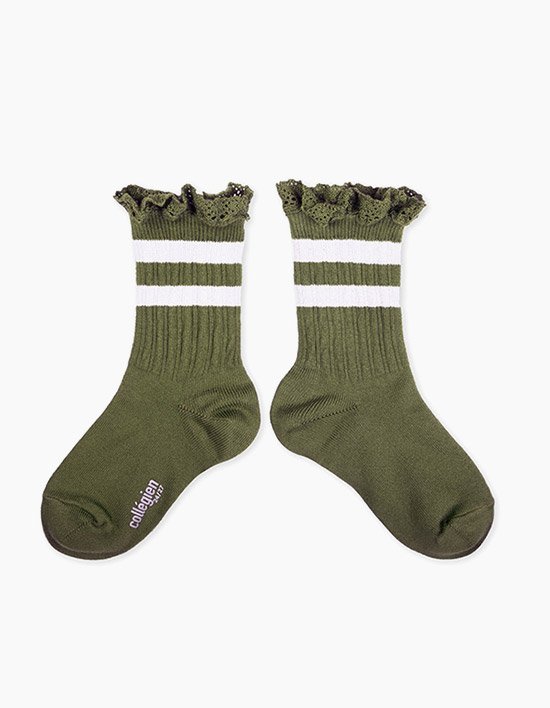 [꼴레지앙] 니콜 스트라이프 레이스 유아동 양말 - 올리브