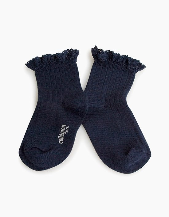 [꼴레지앙] 릴리 러플 레이스 유아동 양말 - 딥네이비