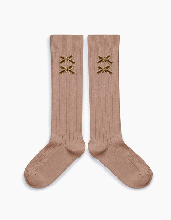 [꼴레지앙] 오르탕스 벨벳 리본 반스타킹 무릎 양말 - 쁘띠토프