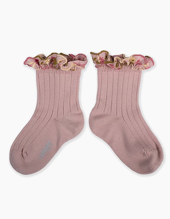 [꼴레지앙] 아네모네 플라워 자수 러플 유아동 양말 - 로즈