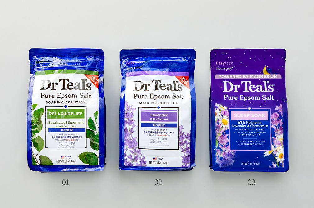 01. 퓨어 앱섬 솔트 유칼립투스 & 스피아민트 ・ 중량 : 1팩(1.36kg)
