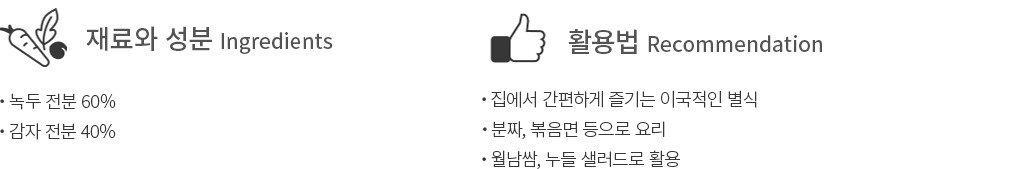활용팁 ・분짜 : 버미셀리에 느억맘 소스와 채소, 구운 돼지고기를 곁들여 분짜로 즐겨보세요.
