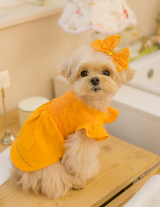 [댕그르르] 린넨 코튼 레이시 드레스 강아지 원피스 4종 - 오렌지 (택1)