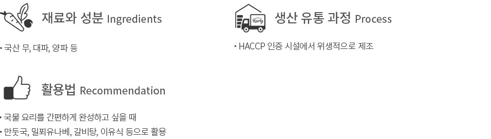 표고버섯과 다시마 농축액에 국산 무, 대파, 양파 등을 더해 완성한 정식품의 담백한 채소육수를 만나 보세요. 채소 본연의 맛과 향이 잘 살아있어 다양한 요리에 활용하기 좋답니다. 국물의 간을 맞추는 게 어려운 분이나 국물 요리를 쉽고 빠르게 완성하고 싶은 분에게 추천해 드릴게요.
