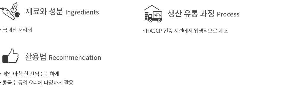 ・특징 : 국내산 서리태의 고소한 풍미를 진하게 담아낸 콩물입니다.
