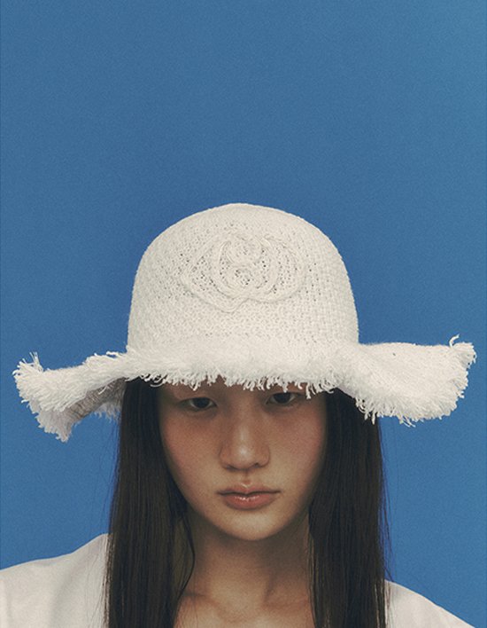 [럭키슈에뜨] 자수 포인트 와이드챙 라피아햇 (화이트)