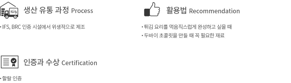 보관 및 해동법 ・-18℃ 이하에서 냉동 보관하시고, 실온에서 2시간 동안 해동한 다음 사용하세요.