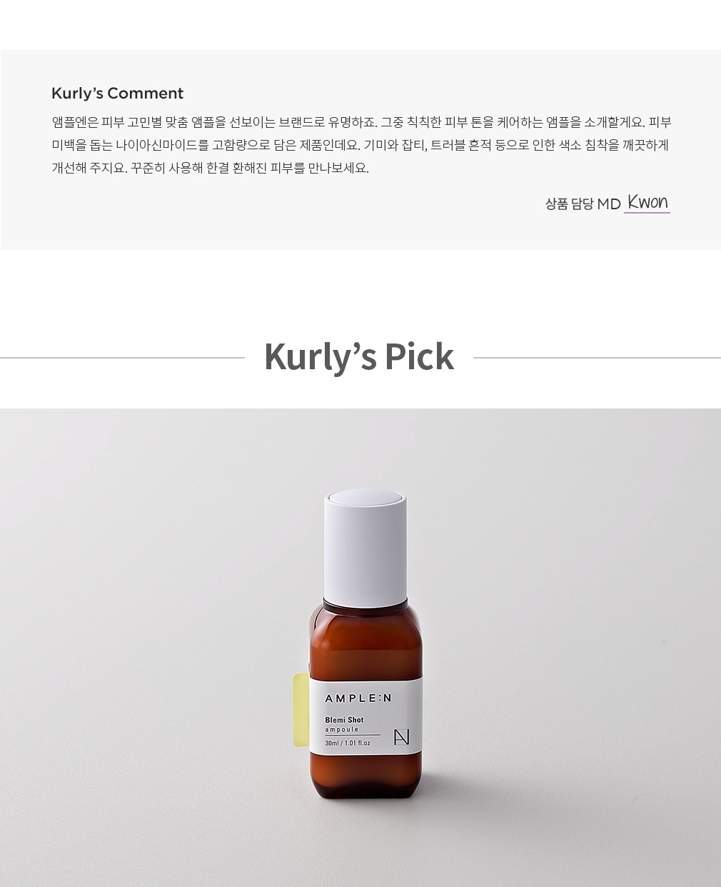 ・ 특징 : 색소 침착을 집중 케어하는 미백 앰플입니다. 약산성 포뮬러로 피부의 pH 밸런스를 안정적으로 맞춰줘요.