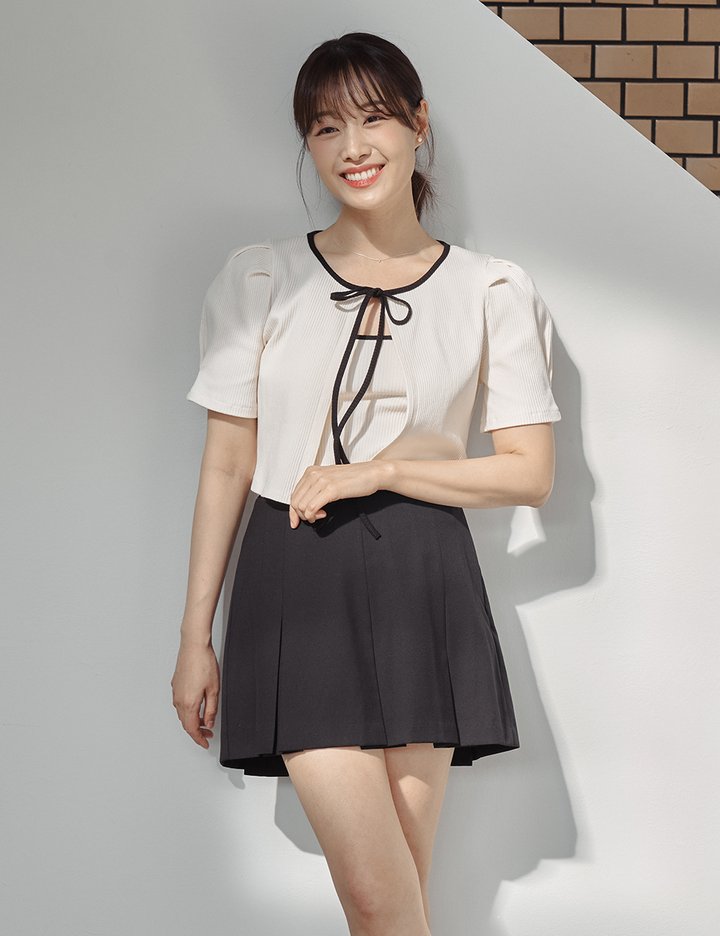 [벰버] 섬머 플리츠 미니 스커트팬츠_블랙