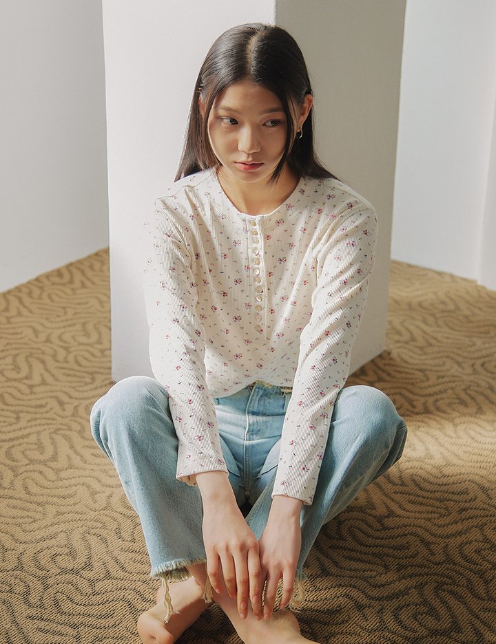 와플 조직 원단을 사용한 캐주얼 무드의 크롭 티셔츠입니다.