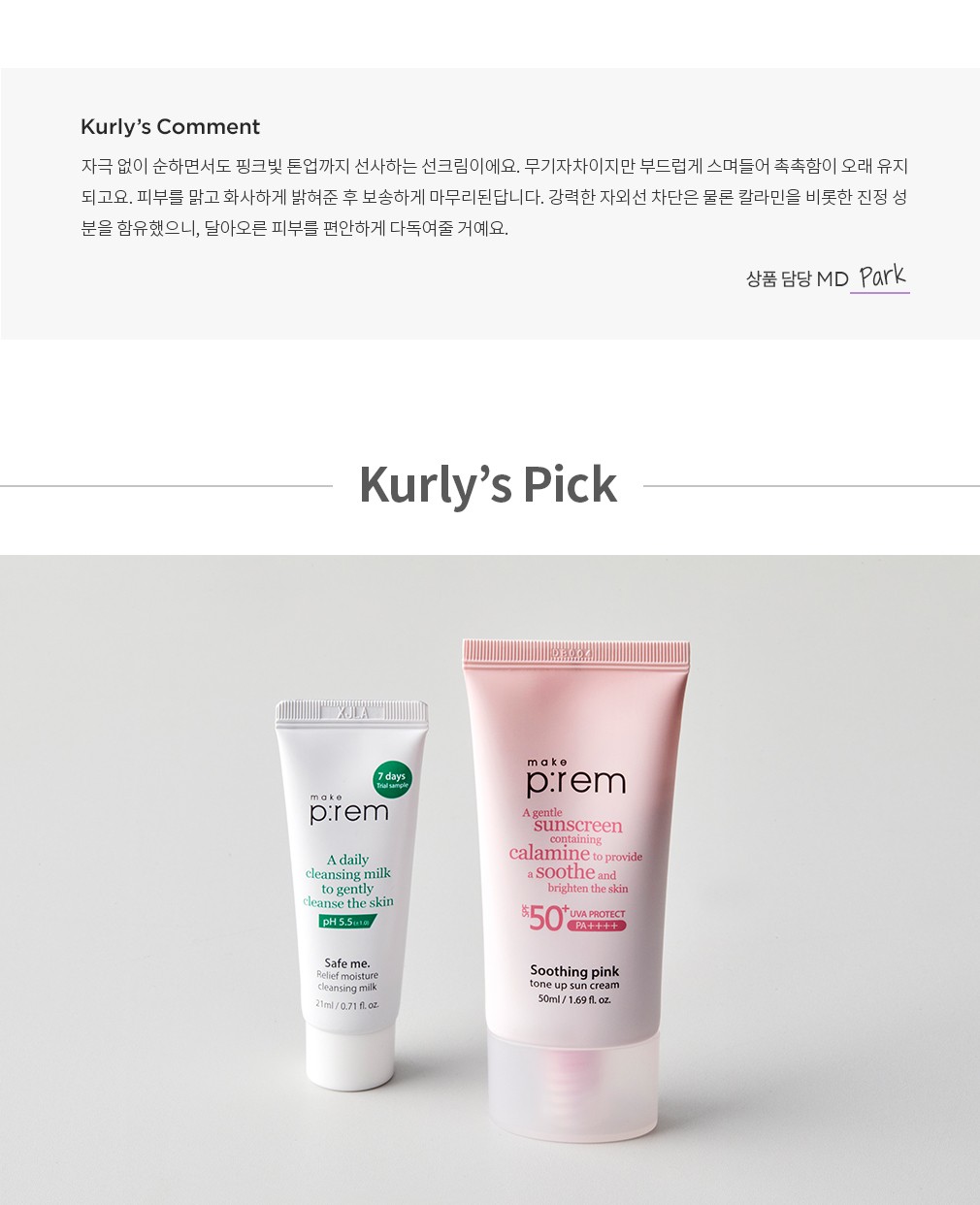[메이크프렘] 수딩 핑크 톤업 선크림 50ml+클렌징밀크 21ml 증정
