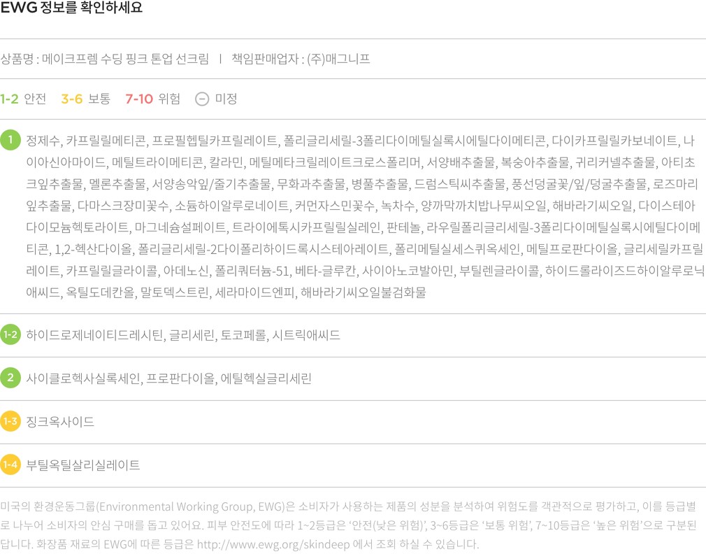 ・ 특징 : 수부지 피부에 추천하는 산뜻한 무기자차입니다. 화사한 톤업과 편안한 진정 효과를 선사해요.