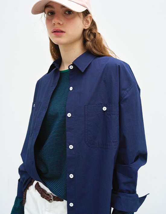 [벤시몽] 오버사이즈 포켓 셔츠 - 네이비