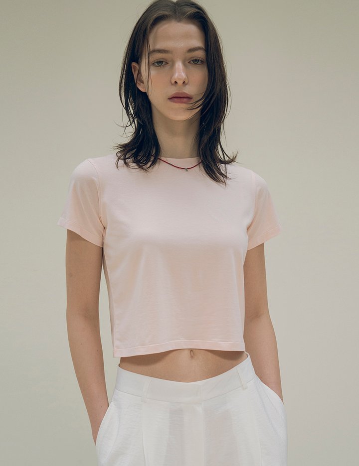 [시야쥬] 플라워 시스루 크롭 티셔츠_살몬핑크(SITP5155)