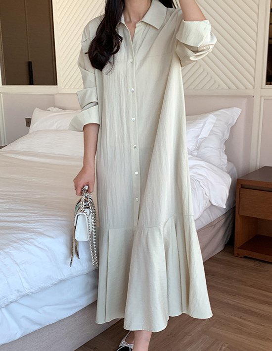 [Muse12] 플루이드 플레어 셔츠 원피스 (택1)