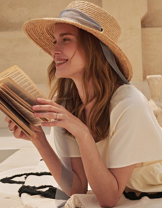 라피아 100% 여름모자 / 리본 : 블루 (탈부착가능)