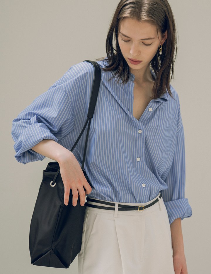 시원한 느낌의 스트라이프 오버핏 라운지 셔츠입니다.