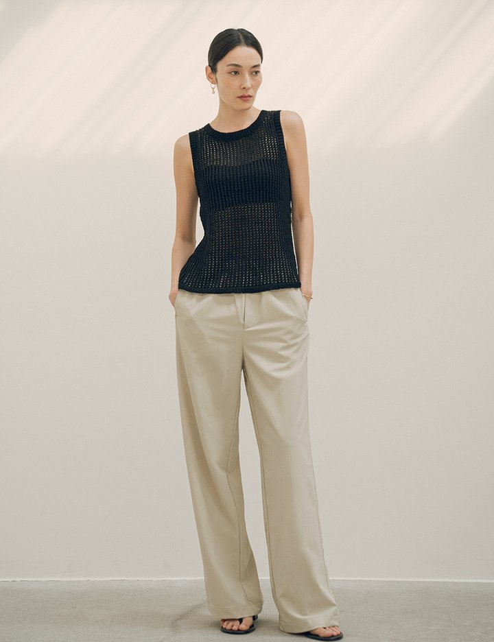 [시야쥬] 밴딩 와이드 나일론 팬츠_베이지(SIPT7118)