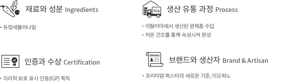 ・활용팁 : 토마토, 라구, 크림 등 꾸덕한 소스에 잘 어울리며, 콜드 파스타로 활용하기에도 좋아요.