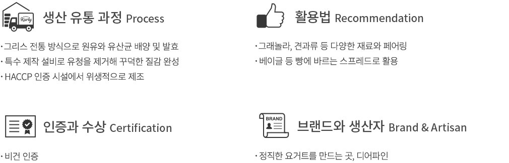 활용팁 ・담백한 베이글이나 깜빠뉴, 바게트 등에 바르는 스프레드로 활용해 보세요. 다채로운 맛의 디어파인 그릭요거트를 함께 활용하셔도 좋아요.
