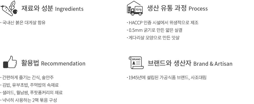 - 게, 우유, 밀, 알류(달걀), 대두, 고등어, 토마토 함유 *이 제품은 메밀, 땅콩, 새우, 돼지고기, 복숭아, 아황산류, 호두, 닭고기, 쇠고기, 오징어, 잣, 조개류(가리비, 굴, 전복, 키조개, 홍합, 바지락)를 사용한 제품과 같은 제조시설에서 제조하고 있습니다.