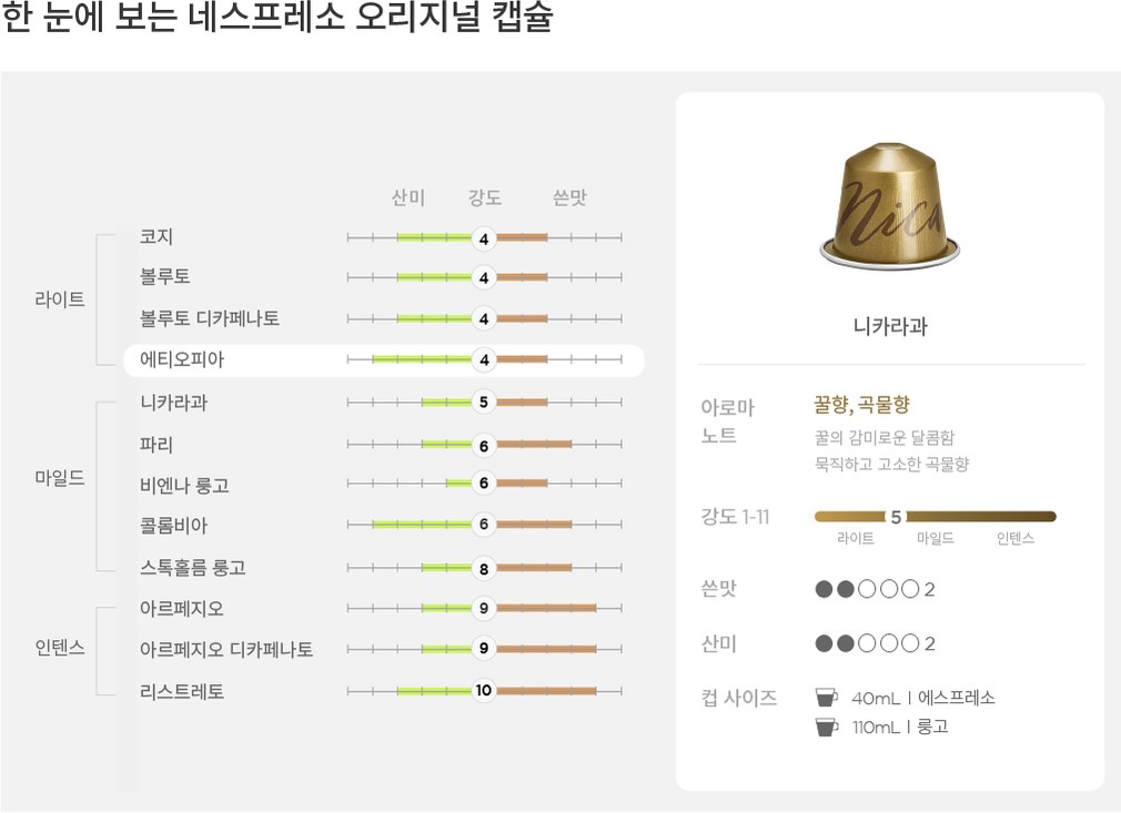 [네스프레소] 니카라과 커피 캡슐(40mL or 110mL)