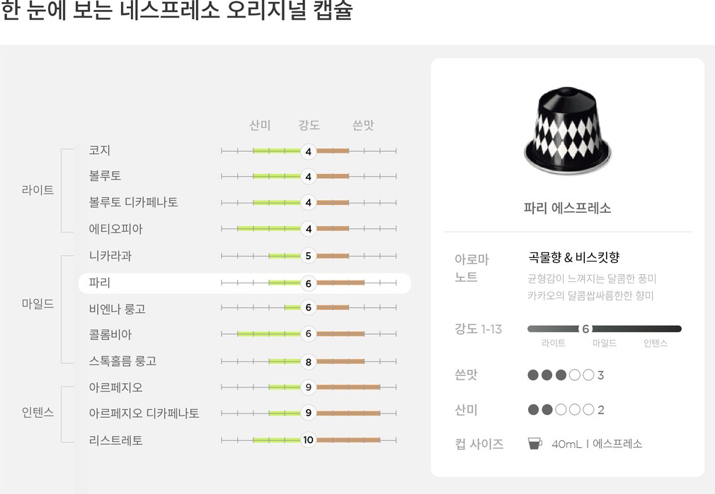 [네스프레소] 파리 에스프레소 커피 캡슐(40mL)