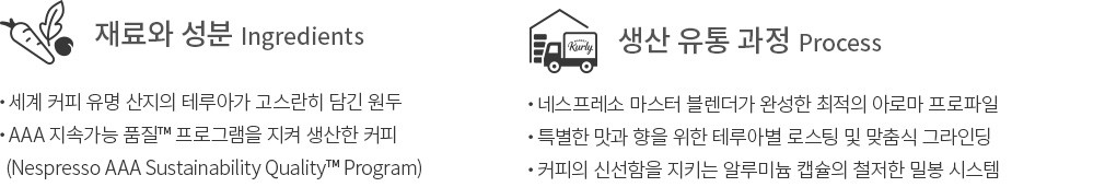 본 제품은 제조사 명칭이 'Nestle Nespresso SA'에서 'Nestle Nespresso Manufacturing SA'로 변경되었습니다. 유통 과정에 따라 기존 표기와 신규 표기 제품이 병행 출고될 수 있으나, 제품의 제조사 및 품질 기준에는 차이가 없습니다.