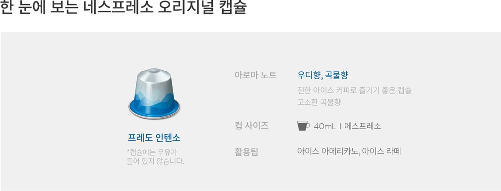 [네스프레소] 바리스타 크리에이션 프레도 커피 캡슐(아이스/인텐소) 10개입(40mL)