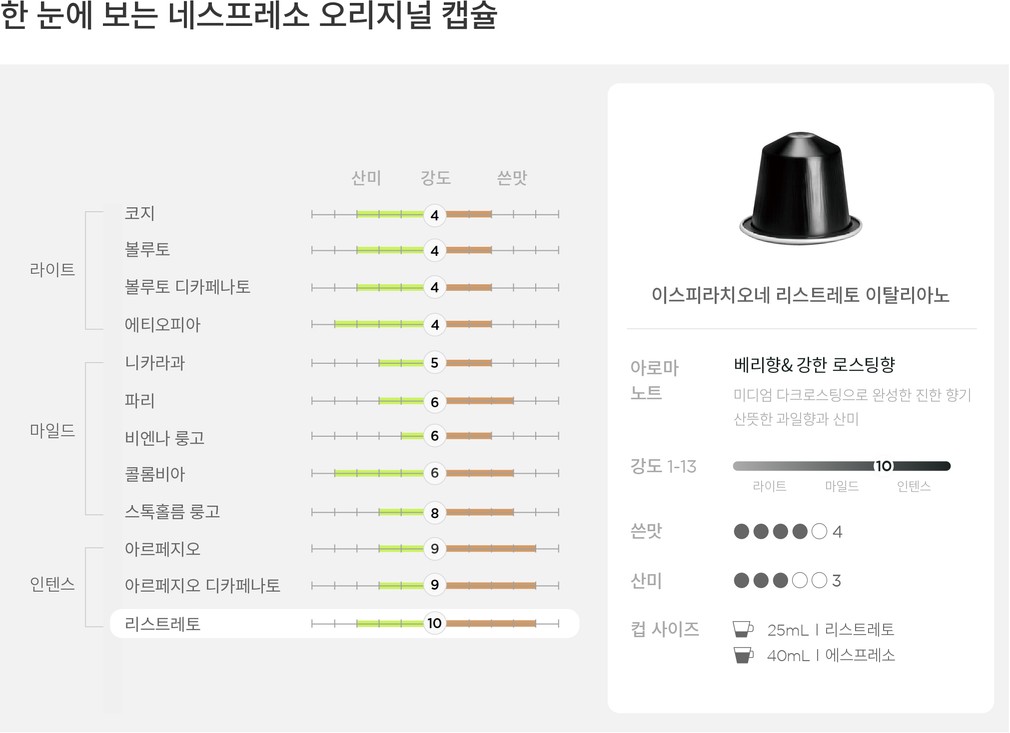 [네스프레소] 리스트레토 이탈리아노 커피 캡슐(25mL or 40mL)