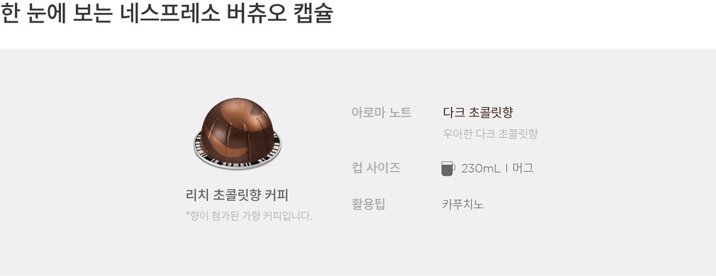 [네스프레소 버츄오] 리치 초콜릿향 커피 캡슐(230mL)
