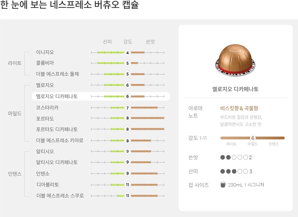 [네스프레소 버츄오] 디카페인 커피 캡슐(멜로지오 디카페나토) 10개입(230mL)