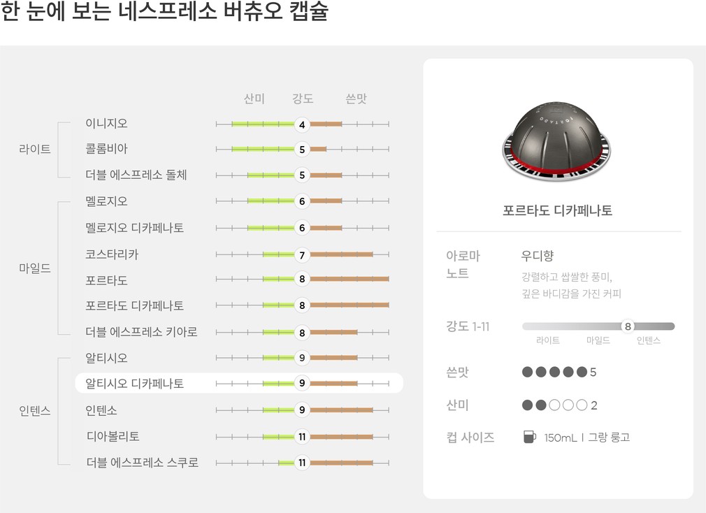 [네스프레소 버츄오] 디카페인 커피 캡슐 (포르타도 디카페나토)(150mL)