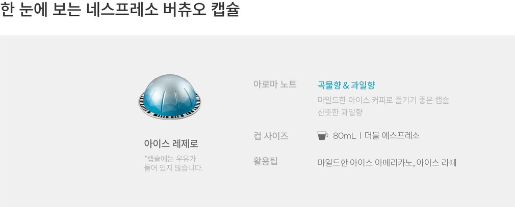 [네스프레소 버츄오] 커피 캡슐 (아이스/레제로)(80mL)