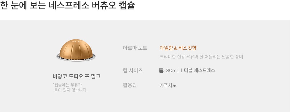 [네스프레소 버츄오] 비앙코 도피오 포밀크 커피 캡슐 10개입(80mL)