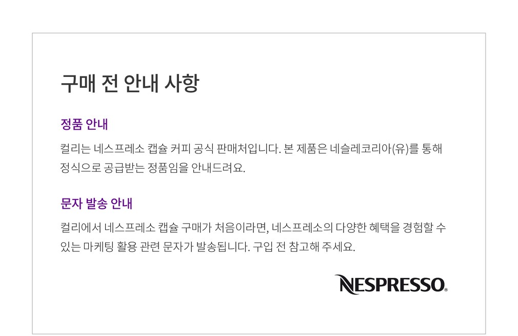 컬리는 국내 이커머스 업계 최초로 네스프레소 캡슐 커피를 론칭하는 첫 공식 판매처가 되었습니다. 품질을 최우선으로 하는 컬리의 변함없는 철칙으로 엄격한 네스프레소의 유통 기준까지 만족시켰답니다.