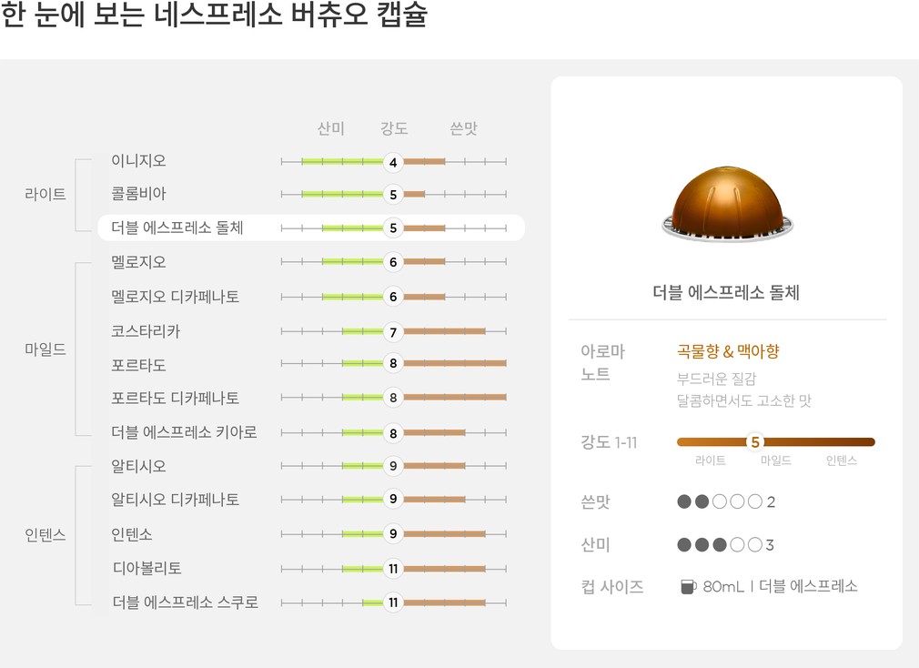 [네스프레소 버츄오] 더블 에스프레소 돌체 커피 캡슐(80mL)