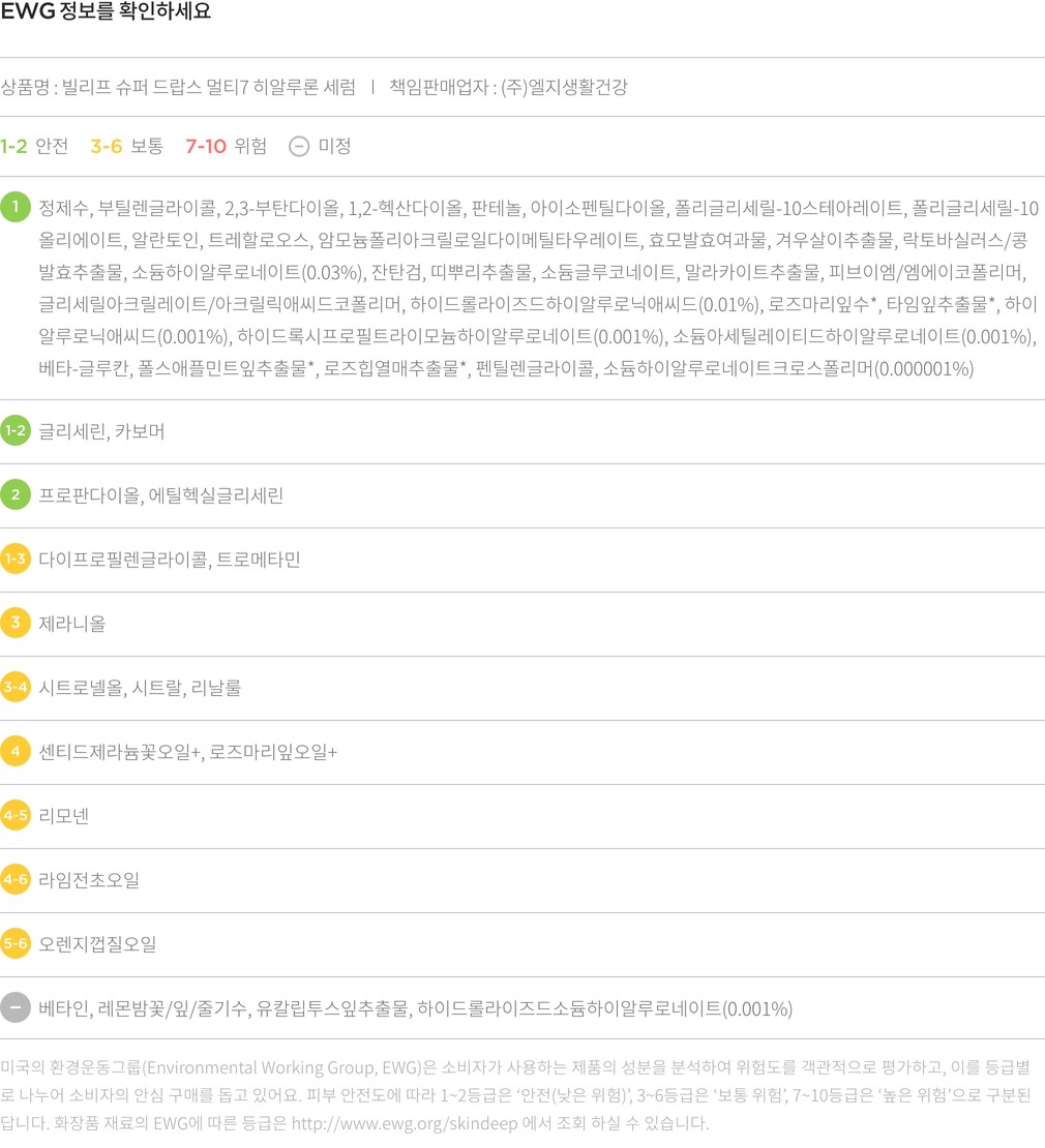 ・ 특징 : 히알루론산 7종과 판테놀 등이 함유되어 피부 속까지 수분감과 보습감을 채워줄 세럼이에요.