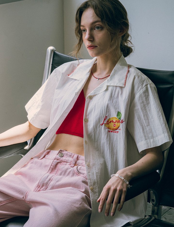 가볍고 시원한 코튼/나일론 혼방 소재로 청량한 느낌의 그래픽과 컬러감 있는 자수가 포인트가 되는 반팔 셔츠