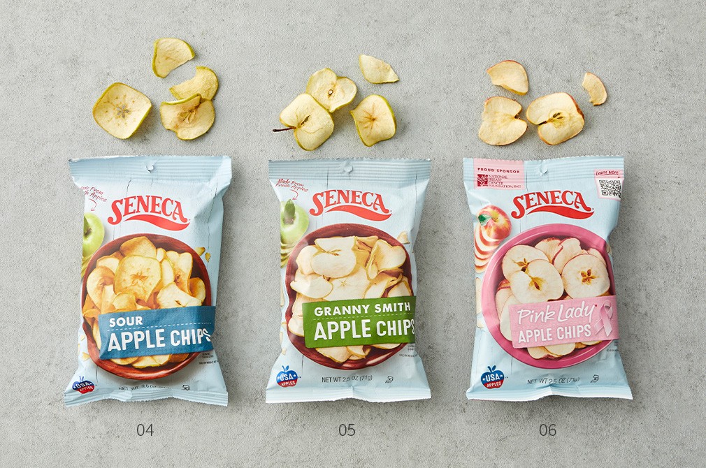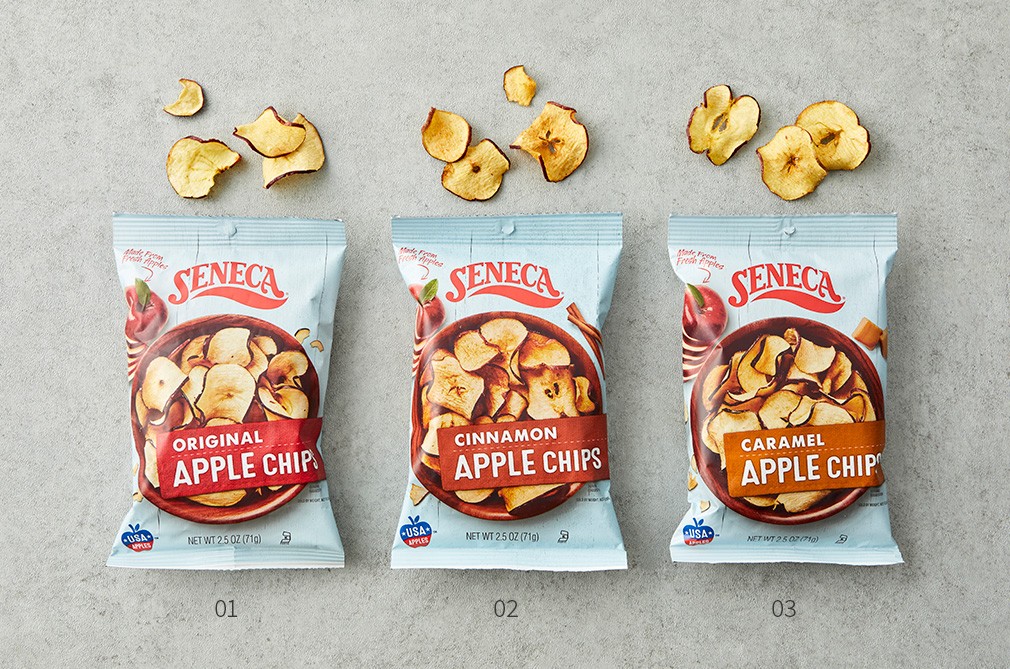 사과 본연의 상큼달콤한 풍미를 살려 완성한 세네카의 애플칩을 소개할게요. 사과를 얇게 슬라이스해 깔끔하게 튀겼답니다. 바삭한 식감과 새콤달콤한 맛이 돋보이지요. 오리지널부터 향긋한 시나몬, 새콤한 풍미의 핑크레이디 등 6가지 종류를 준비했으니 취향에 따라 골라보세요.