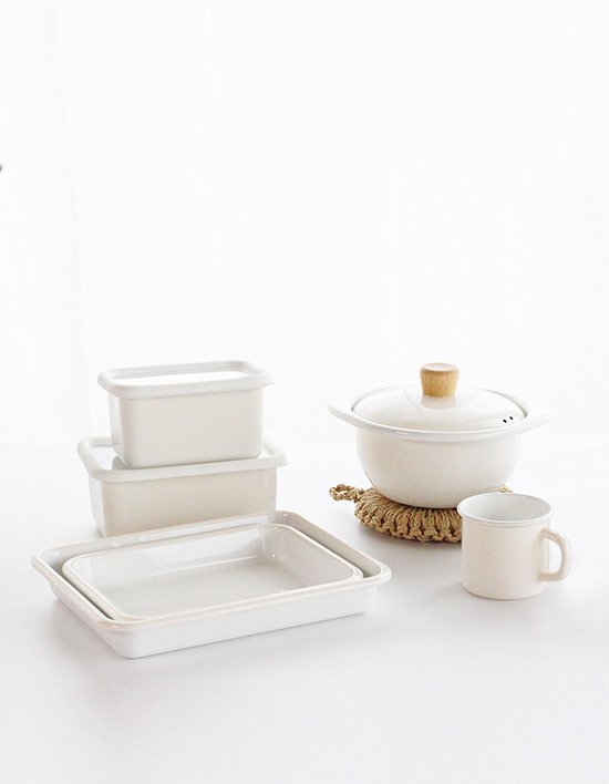 [아카시아] 퓨어 화이트 법랑용기 (머그/트레이/냄비) 4종 (택1)