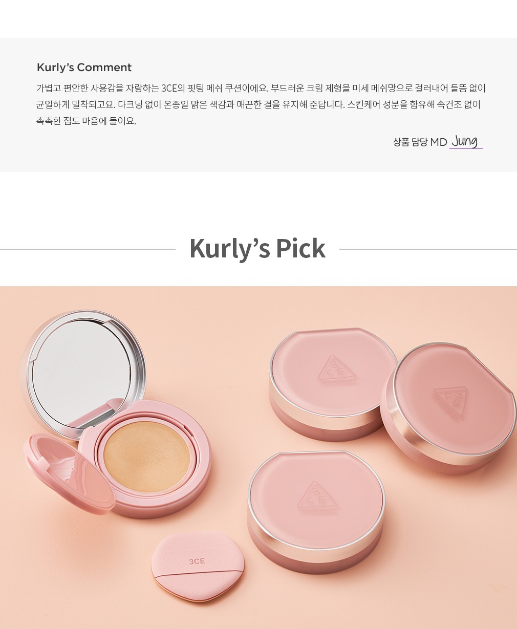 [3CE] 핏팅 메쉬 쿠션 6종 (택1)